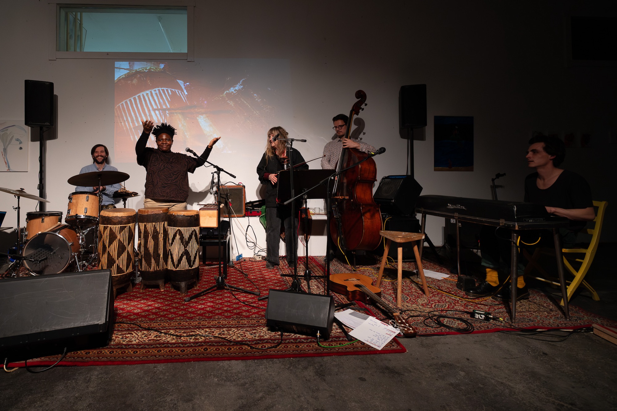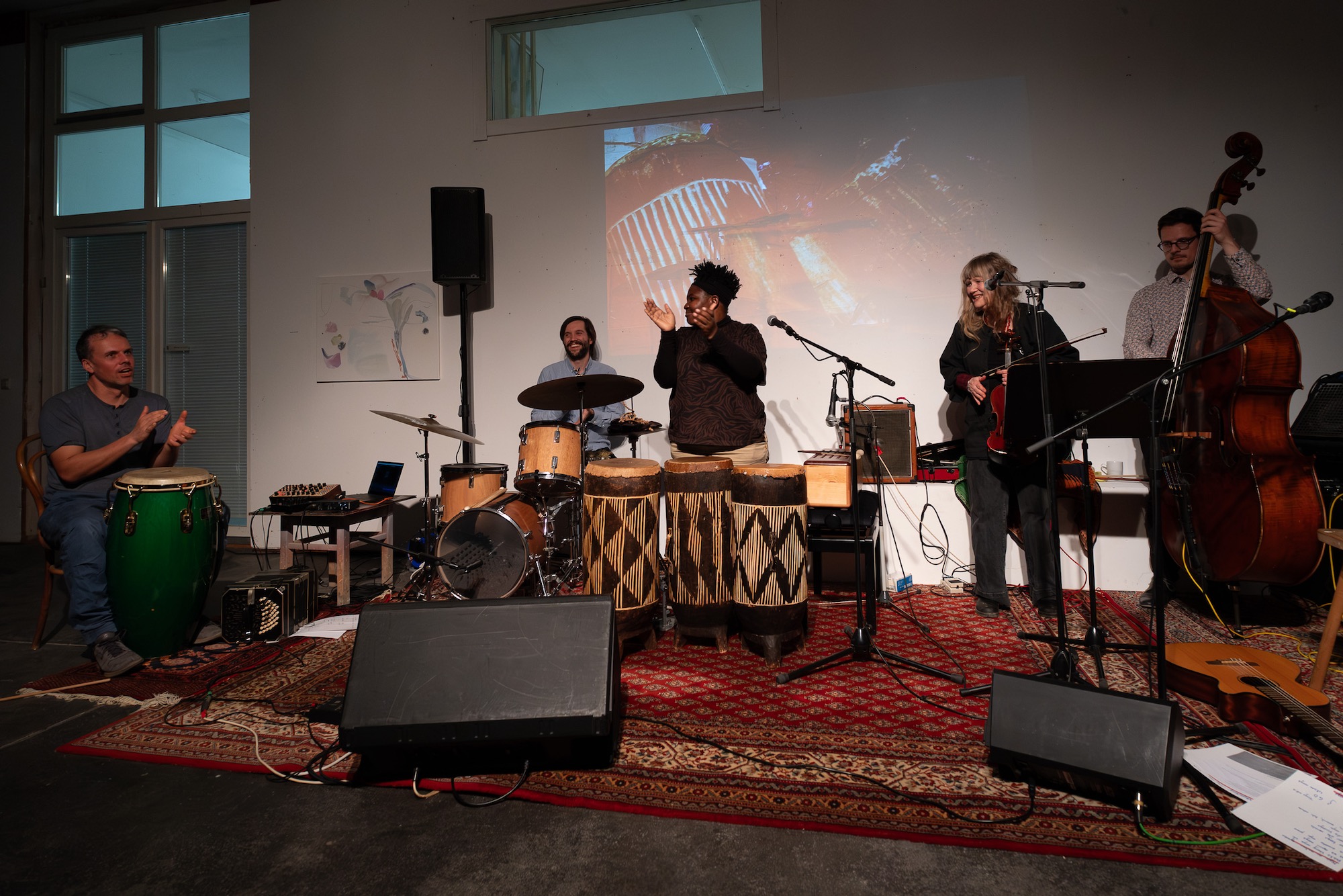 Robert und Dave kochten eine wunderbare Minestrone für alle und die drei Improvisatationsmusiker Katharina Escher / Bernhard Klein / Thomas Zimmermann spielten für Martha. Musikalisch schlossen sich dann Robert und Dave an.