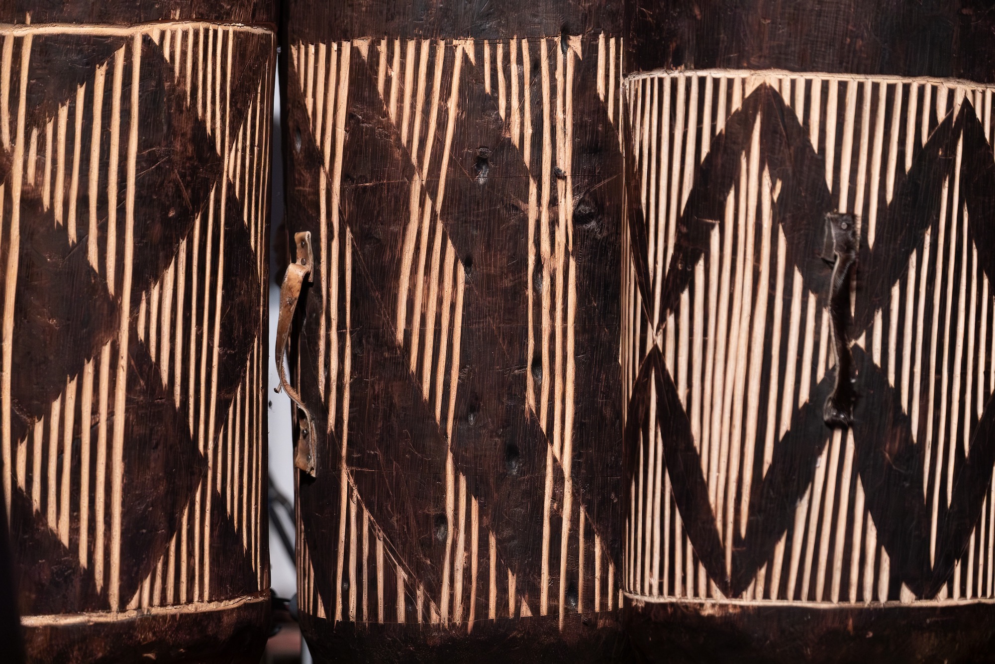 Bambusstäbe, Schnur, Stoffbahnen.